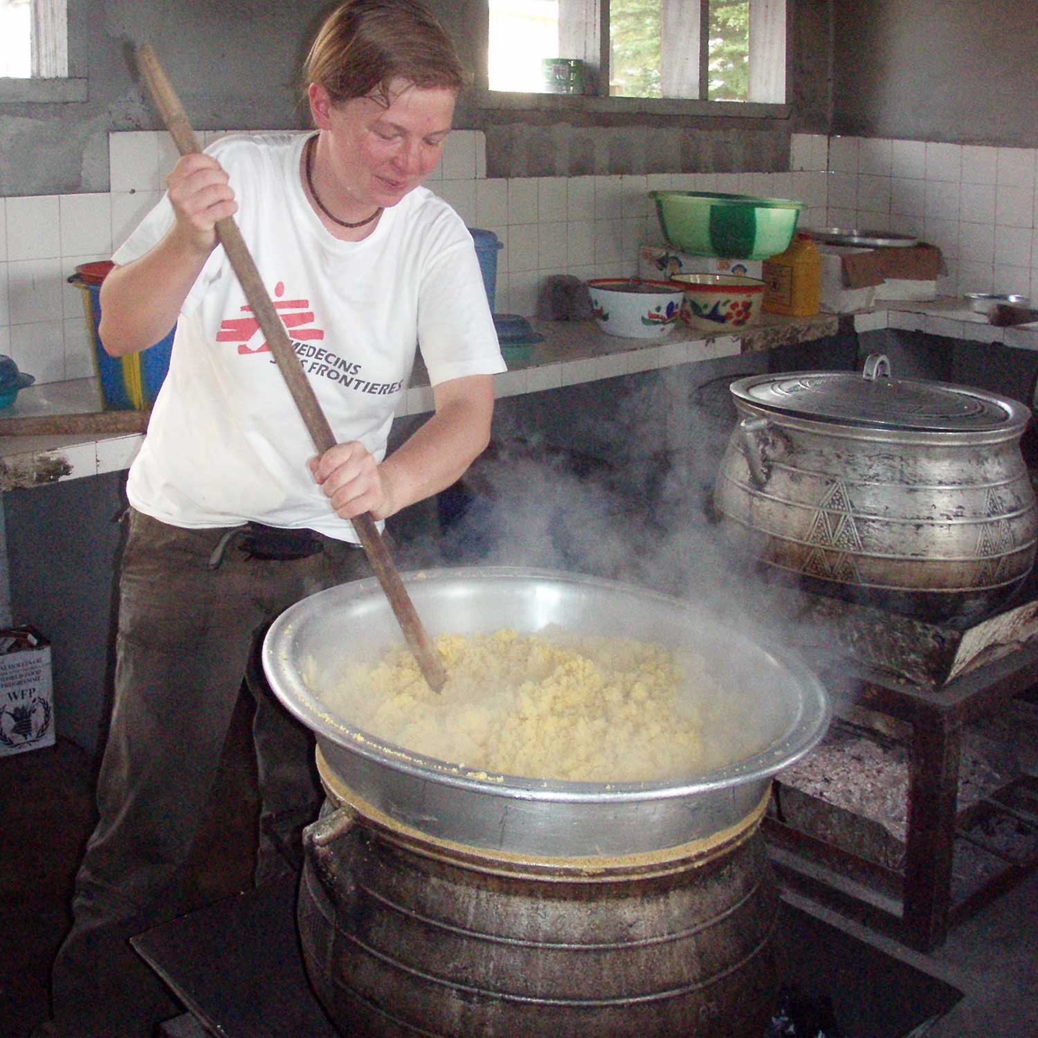 Caro in der Krankenhausküche des Kriegskrankenhause im Dschungel Cote d‘Ivoire 2007