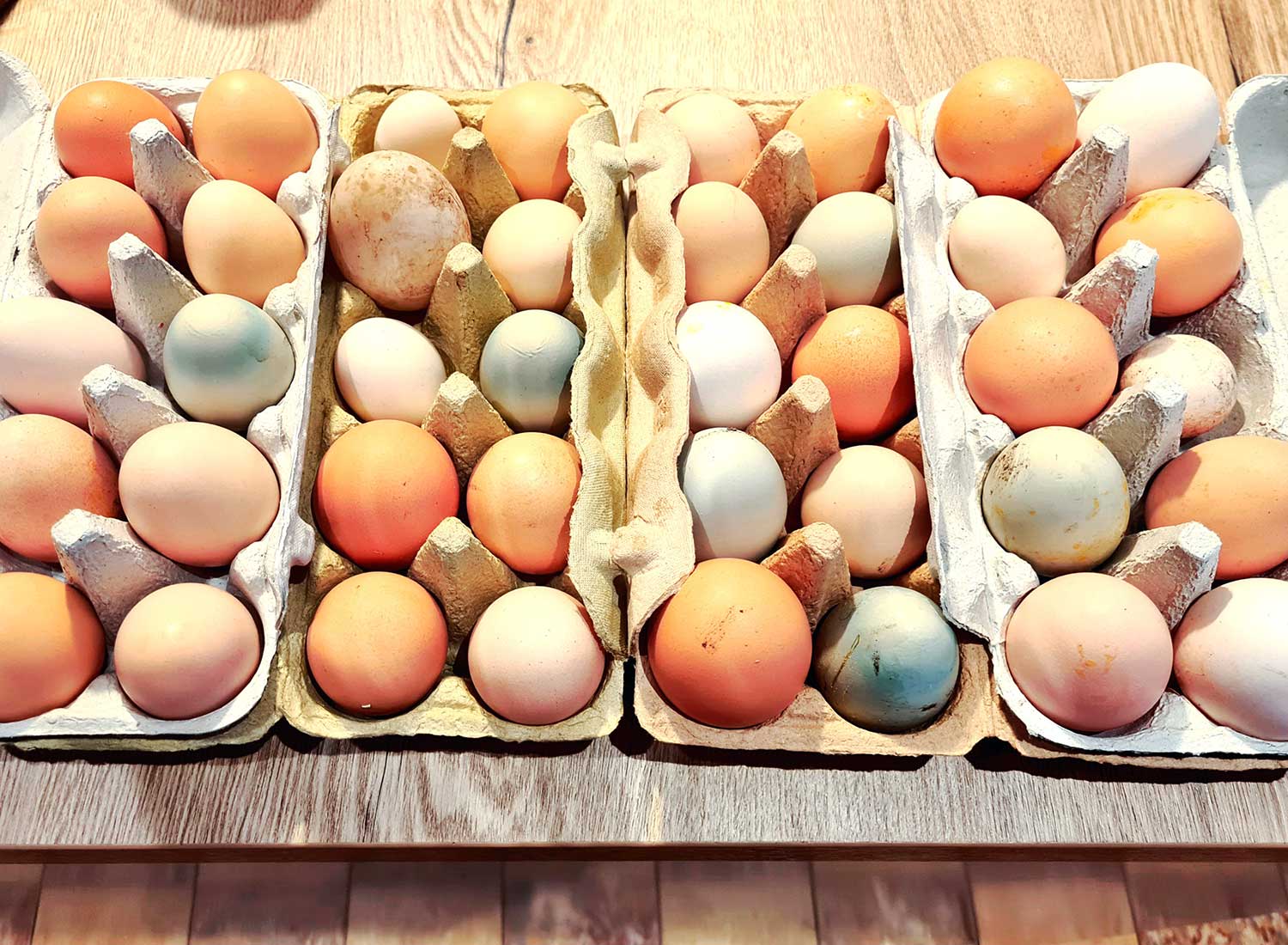 Wie bei vielen Hühnerhaltern bestand auch unsere kleine Herde zunächst aus drei hübschen, geflügelten Damen, die im Garten leben und gelegentlich mal ein Ei legen sollten. Aber die Faszination Geflügel nahm schnell ihren Lauf. Mittlerweile sind wir ganz verliebt in das liebe Federvieh, haben viele verschiedene, zum Teil seltene Rassen vereint und erfreuen uns an dem beeindruckend farbenfrohen Eiersegen. Die Bande besteht heute aus 20 Hühnern, den beiden Pekingenten Jens und Elke und unserer Pute Ute. Aber Eier legen bei uns nicht nur die geflügelten Zweibeiner …