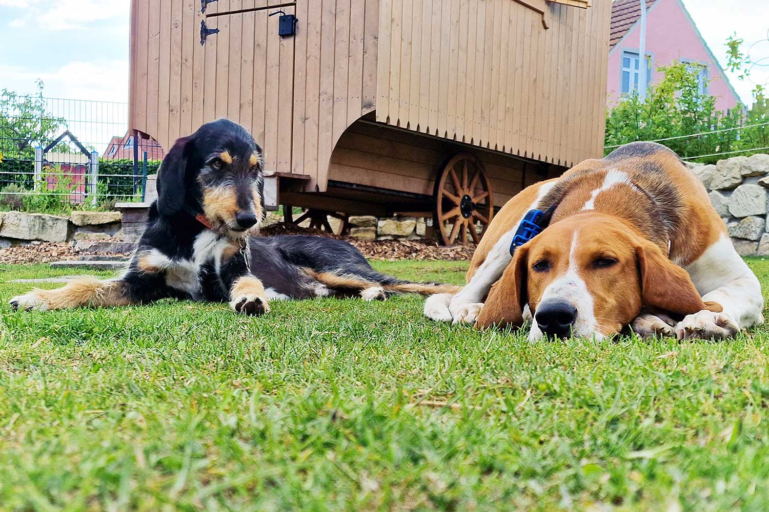 Das Dackelmixmädchen Mimmi lebt mit ihrem Frauchen Lena im integrativen Mehrgenerationenwohnen auf Gut Feismann. Manchmal empfindet sie sich als etwas größer als sie ist und probiert sich als Wachhund an unseren Toren. Dann hat sie die Hosen an und alle anderen Hunde machen gerne mit beim großen Geläut.