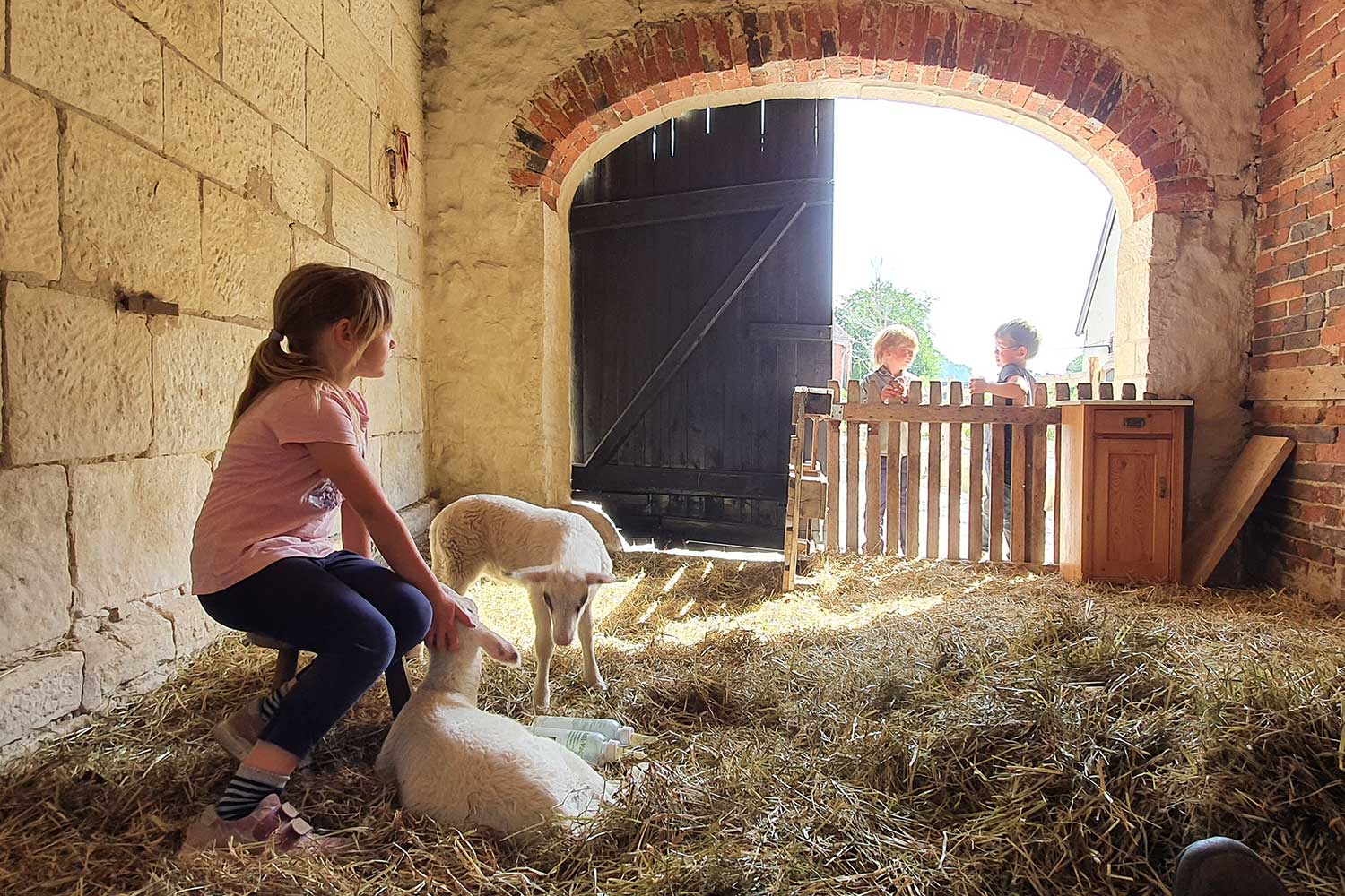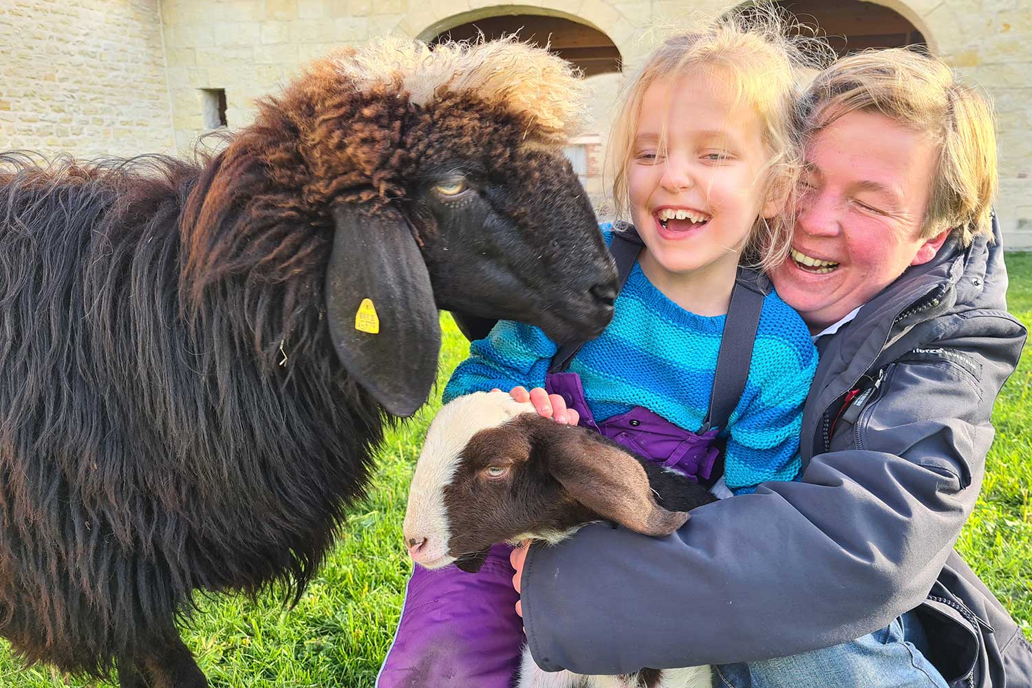 Was Schafe in einem Kinderhospiz leisten können, hätte wohl niemand für möglich gehalten. Unsere warmen Wollwesen sind ein wichtiger Teil des Teams Tier geworden und machen uns jeden Tag aufs neue so viel Spaß. Wenn Sie Schafe in Ihrem Therapiebetrieb, Kindergarten oder zuhause einsetzen möchten, sprechen Sie uns gerne an und reservieren Sie sich Tiere aus unserer Nachzucht. Durch den engen Kontakt mit Menschen vom ersten Tag an, sind unsere Lämmer außergewöhnlich zutraulich und sehr gut geeignet für den therapeutischen Einsatz oder als Rasenmäher im heimischen Garten.